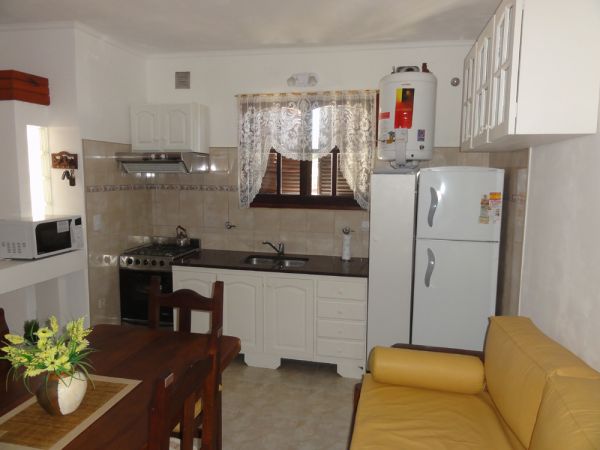 cocina-comedor con divan cama de una plaza mas catre y colchon de una plaza, microondas, heladera c/freezer,