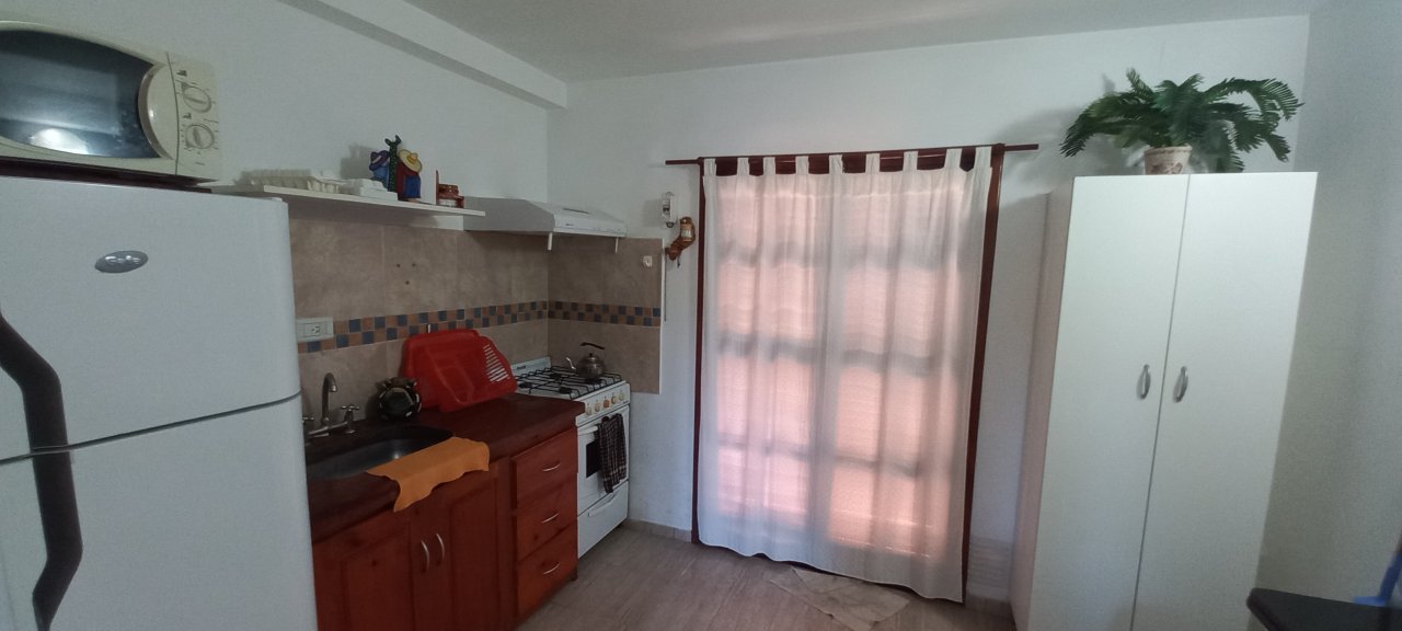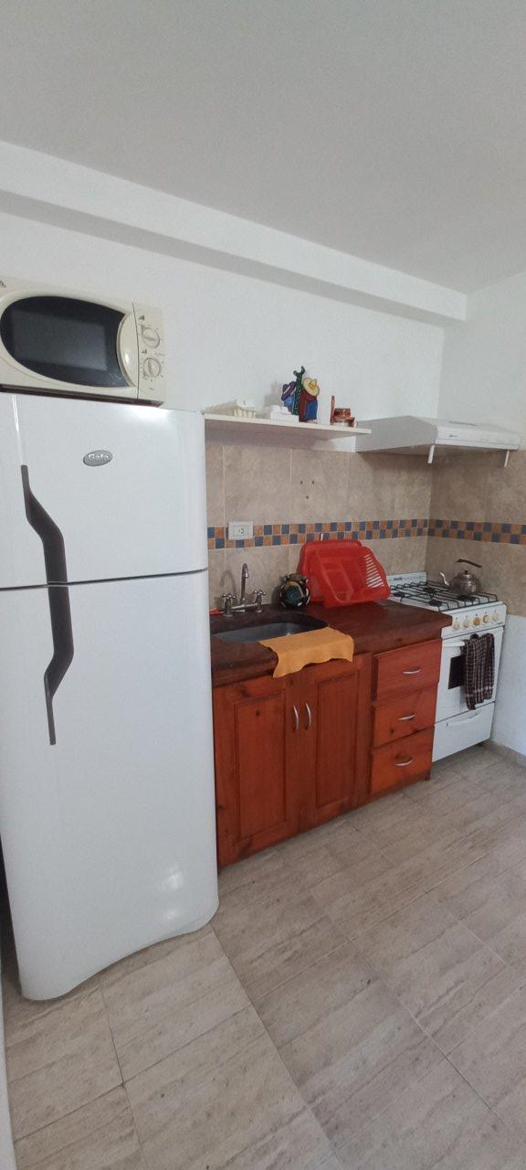Cocina con microondas y heladera, Living-comedor equipado con divan cama de una plaza
