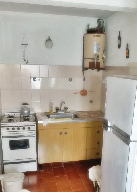 baño completo con todos sus artefactos, Cocina - comedor con heladera, juego de mesa con sillas,