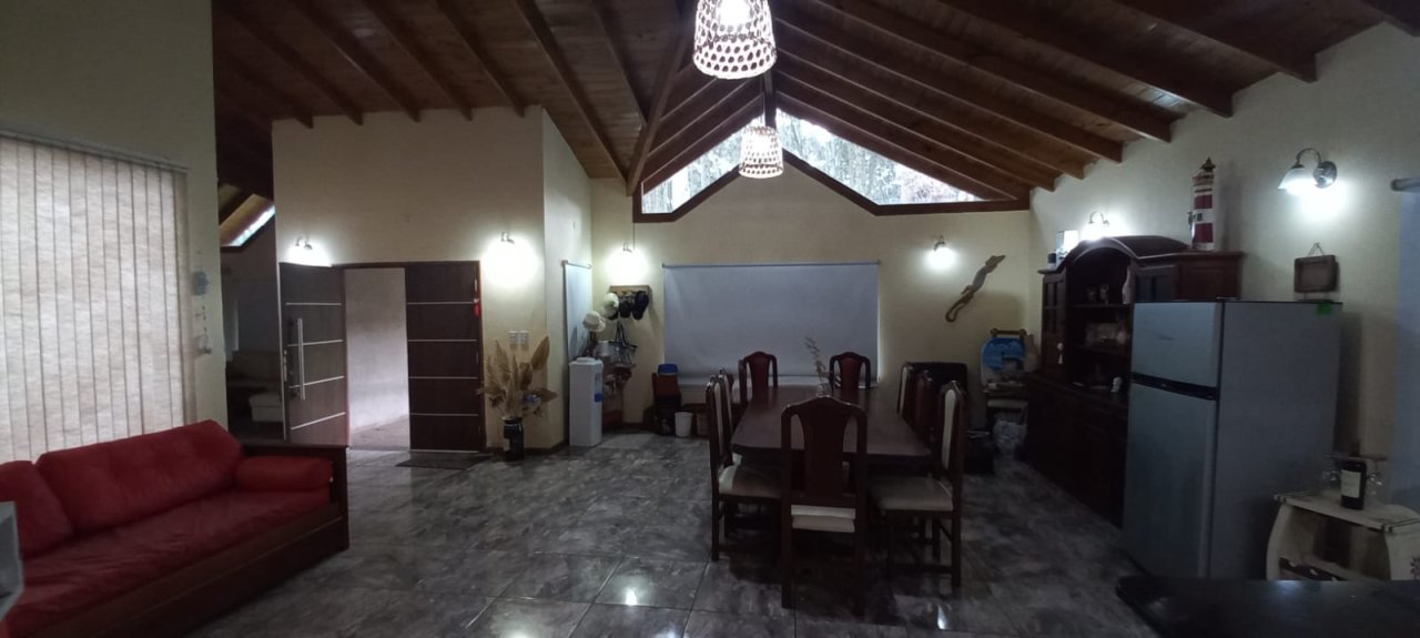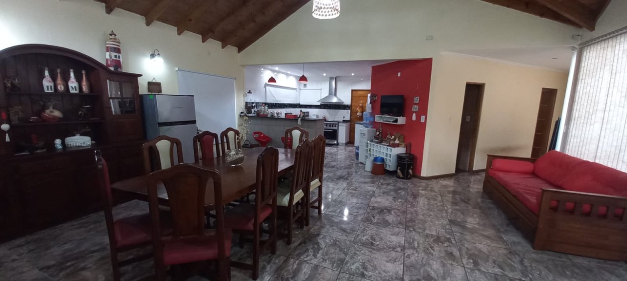 Luego nos encontramos con un espacioso y comodo comedor, el mismo tiene mesa de algarrobo con mueble ysillas haciendo juego,