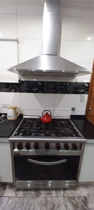 la misma tiene pequeños electros como microondas, Artefacto cocina tipo industrial, Heladera con frezzer y Campana con purificador de aire.