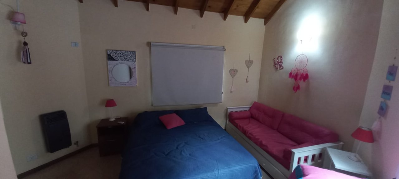 Segundo dormitorio con sommier de 2 plazas, divan cama con catre mas sus colchones de una plaza haciendo juego, tiro balanceado, placard empotrado y aire acondicionado.