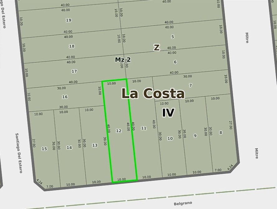 Descripcion: Lote de 400 metros cuadrados sobre calle Belgrano.