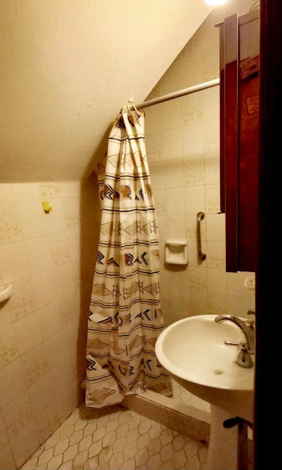 Tiene 3 baños con ducha, uno en planta baja y los otros dos en 1º piso.